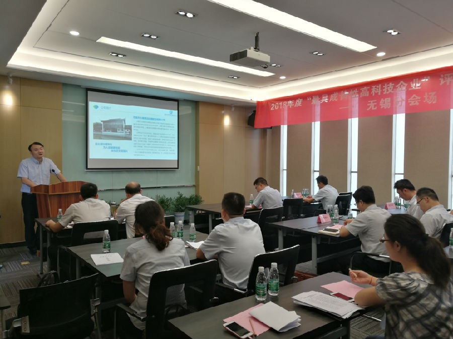 惠山區(qū)2018年度“最具成長性高科技企業(yè)”評選活動近日舉行,湖泊公司通過第一輪技術評審后,于9月11日在惠山科技金融中心參加第二輪現(xiàn)場答辯,公司董事長黃曉峰參加了答辯。